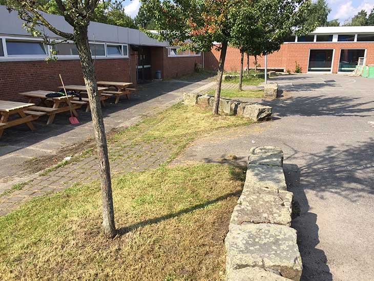 Erste Bereiche erfreuen sich bereits eines neuen Glanzes. Zum Beispiel wurden die Steinbänke von Rasenwuchs und Unkraut befreit und jede Menge Rasenflächen gemäht. Arbeit steht auf unserem tollen Schulgeländer immer an, sodass unserer Schulhoftruppe auch in den kommenden Monaten die Aufgaben sicher nicht ausgehen werden.