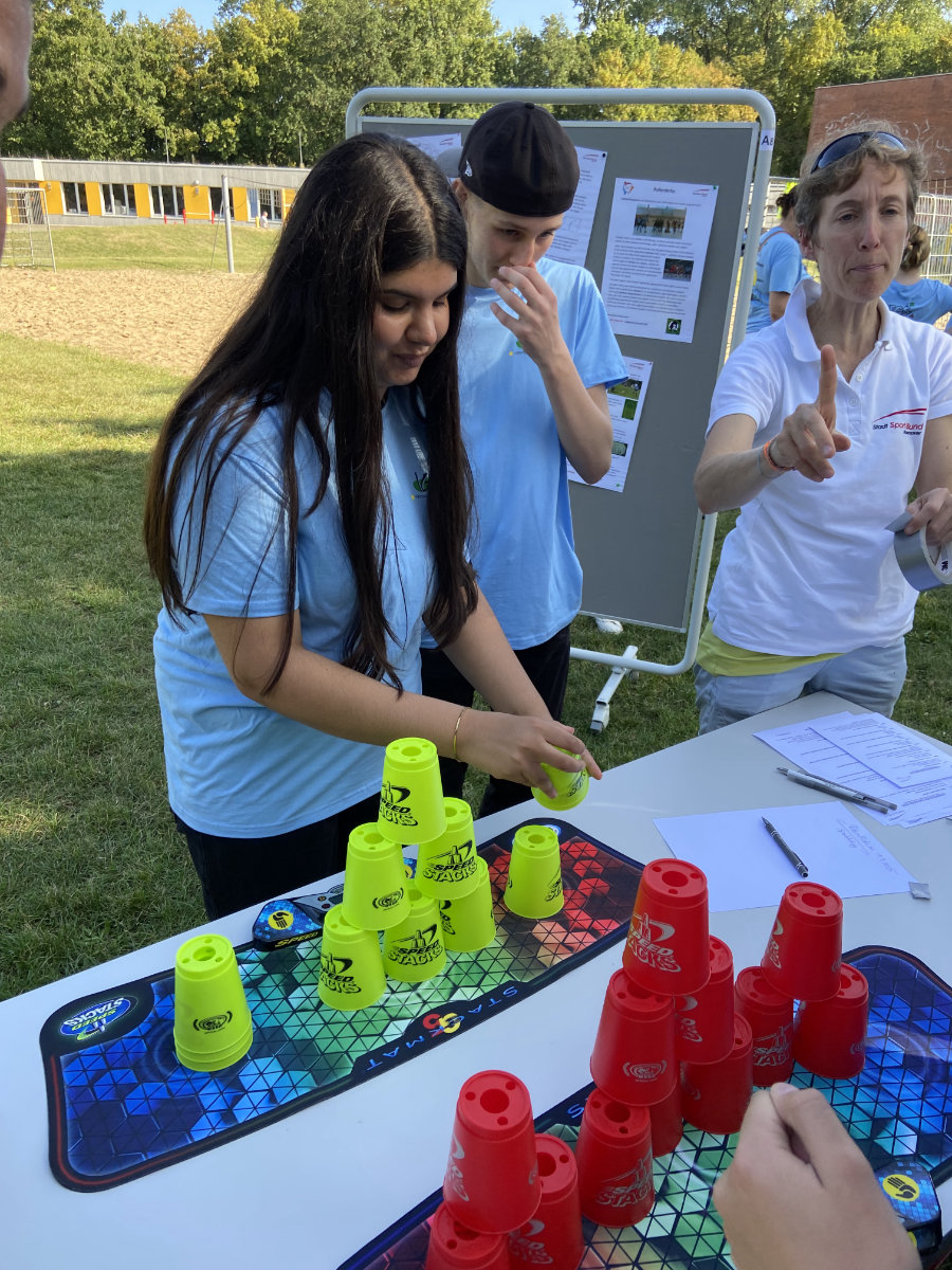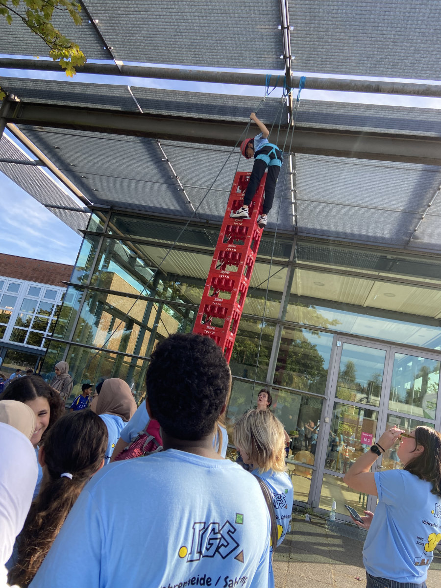 Am Nachmittag des 19. September 2025 fand für die Schülerinnen und Schüler ein Schul- und Erlebnisfest auf dem Schulgelände statt. Mit dabei waren Sport- und Freizeitvereine aus den umliegenden Stadtteilen sowie die Polizei. So konnten die Jugendlichen spielen, klettern, E-Scooter und „komische“ Räder fahren, basteln oder auch Musik machen. Das Highlight für alle Fußballbegeisterten war die Teqball-Platte. Bei schönstem Sonnenschein hatten alle sichtlich ihren Spaß.