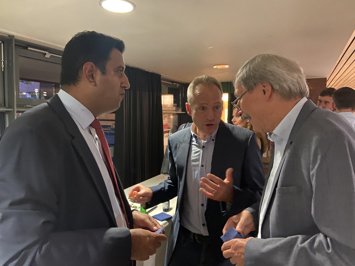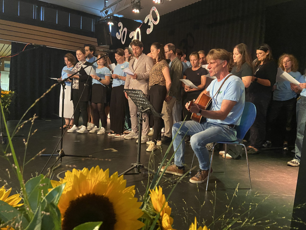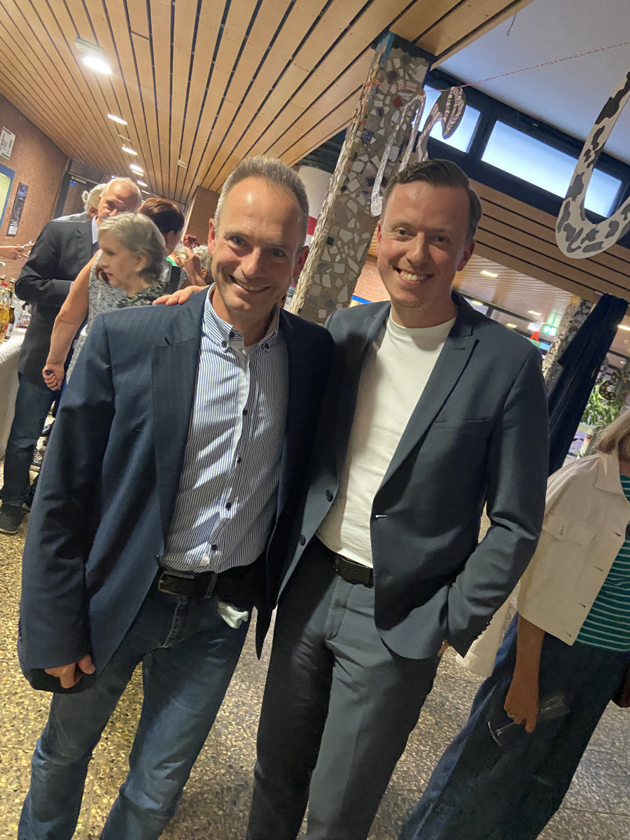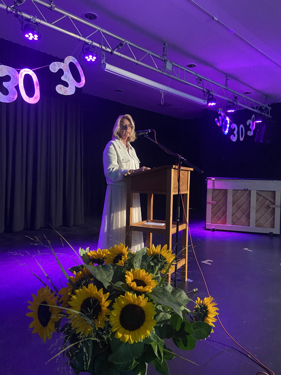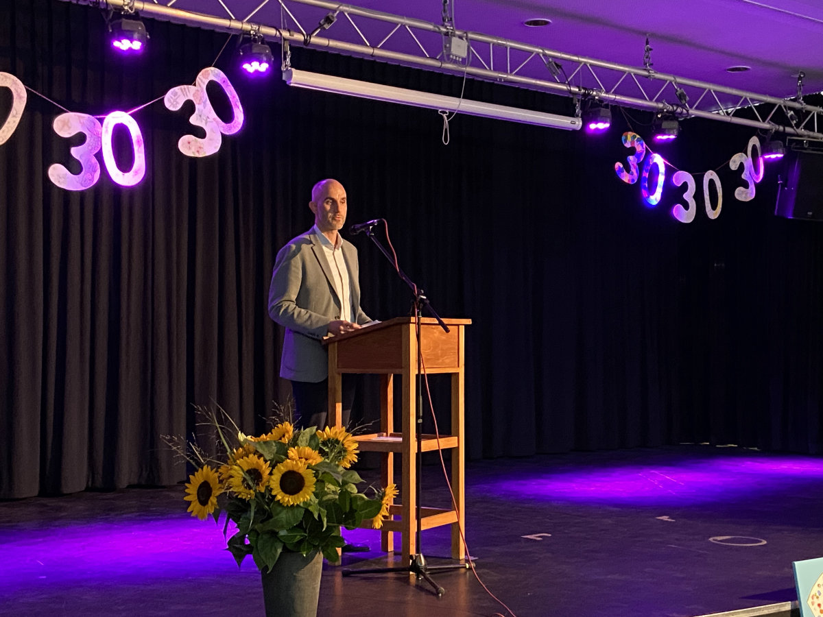 Am Abend wurde mit Gästen aus Bildung, Politik und Gesellschaft und natürlich vielen ehemaligen Lehrkräfte gefeiert. Unser Oberbürgermeister Berit Onay ließ es sich nicht nehmen, an diesem Abend ein paar festliche Worte zu sprechen, genauso wie der Bezirksbürgermeister Dr. Wjahat Waraich, der Bundestagsabgeordnete Adis Ahmetovic und die Dezernentin Frau Wullstein vom RSLB. Die Reden würdigten das Engagement von Lehrkräften, Schülern und dem ehemaligen wie jetzigen Schulteam und setzten Akzente auf Werte wie Lernfreude, Gemeinschaft und Chancengleichheit. Die ganz persönliche Schulerfahrung der Redner blieb dabei nicht außen vor - sehr zur Freude des Publikums!