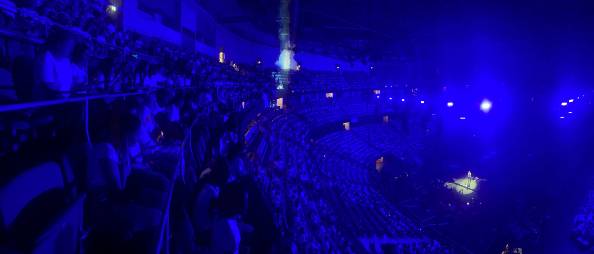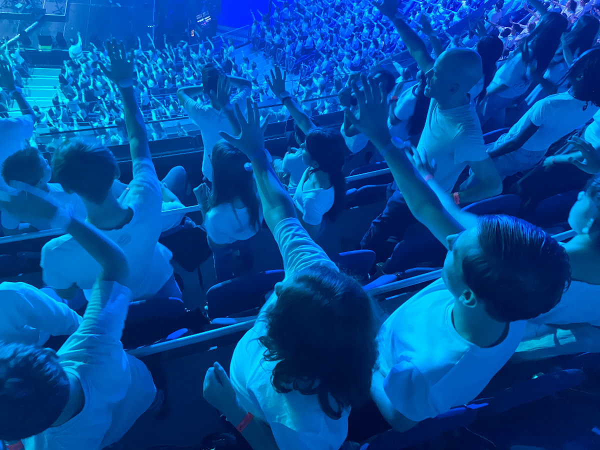 Eine Welle aus Licht rollt durch die Arena,