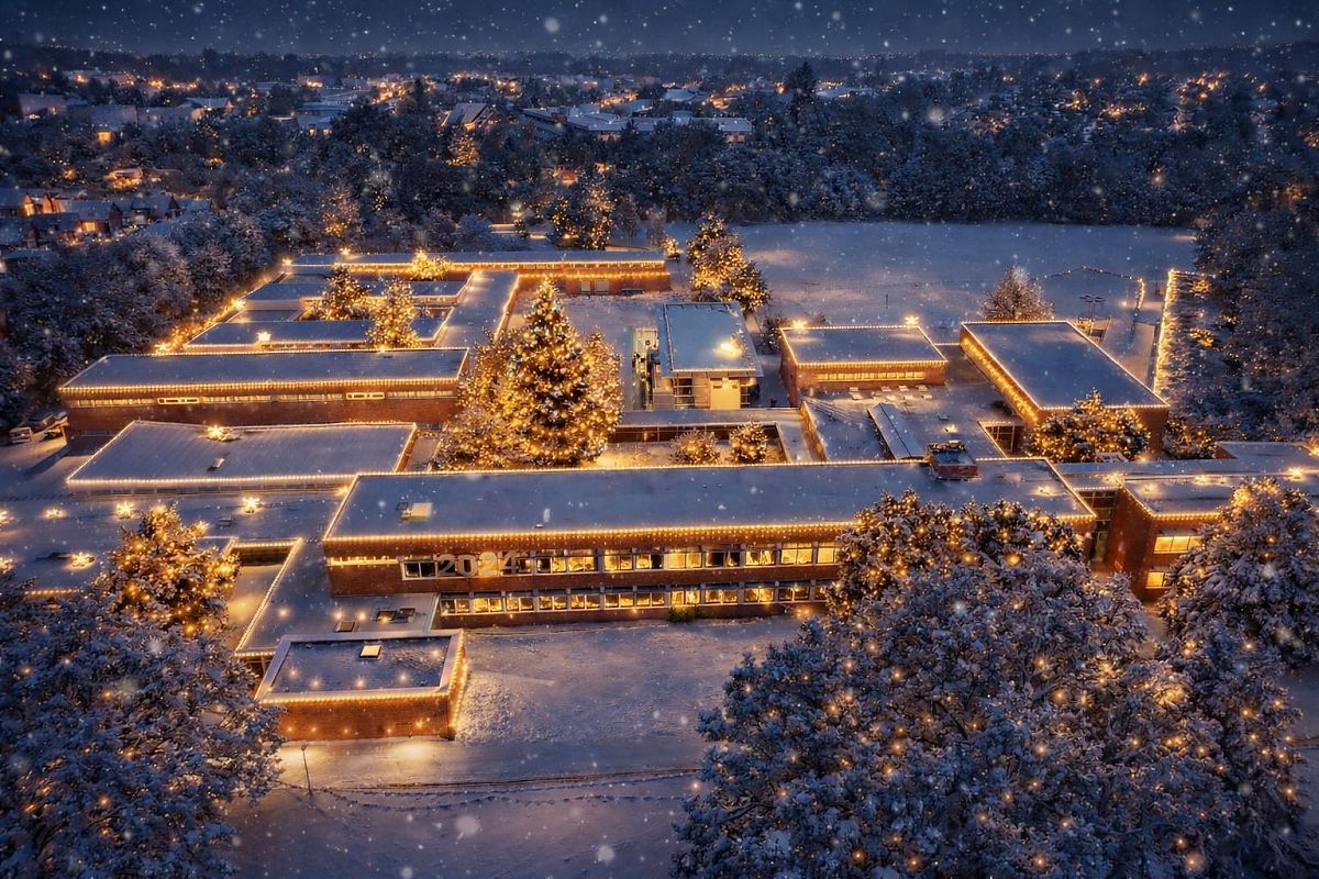 Lassen Sie sich dennoch vom Luftbild unserer weihnachtlichen Schule ein wenig verzaubern.